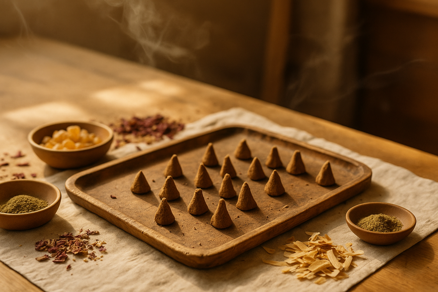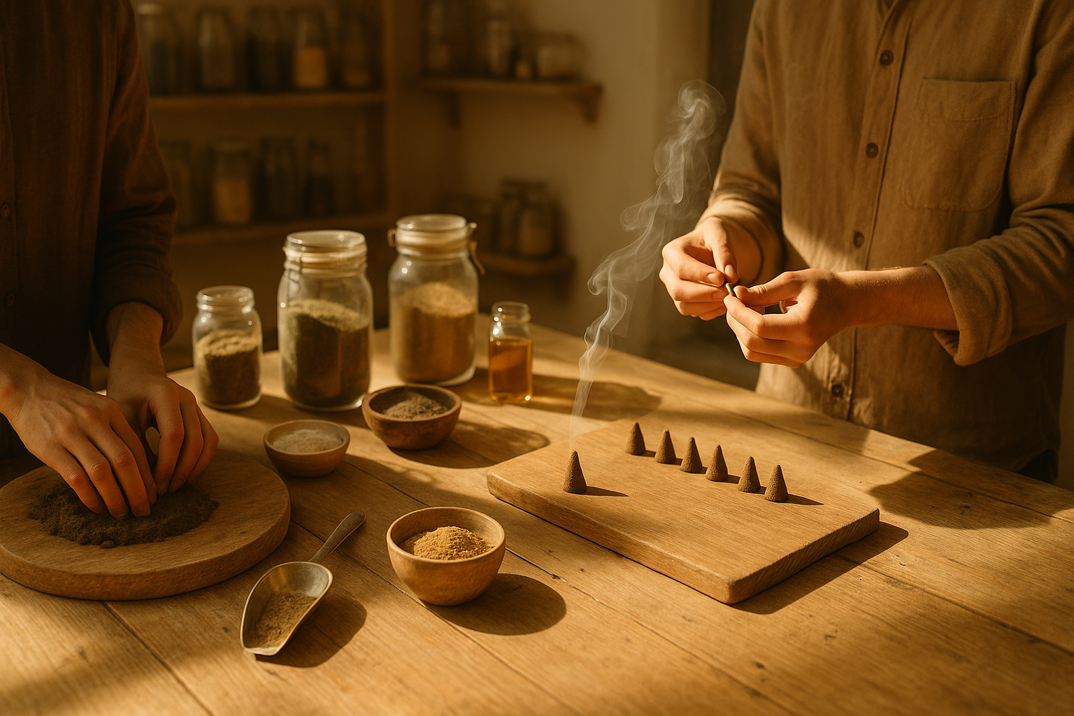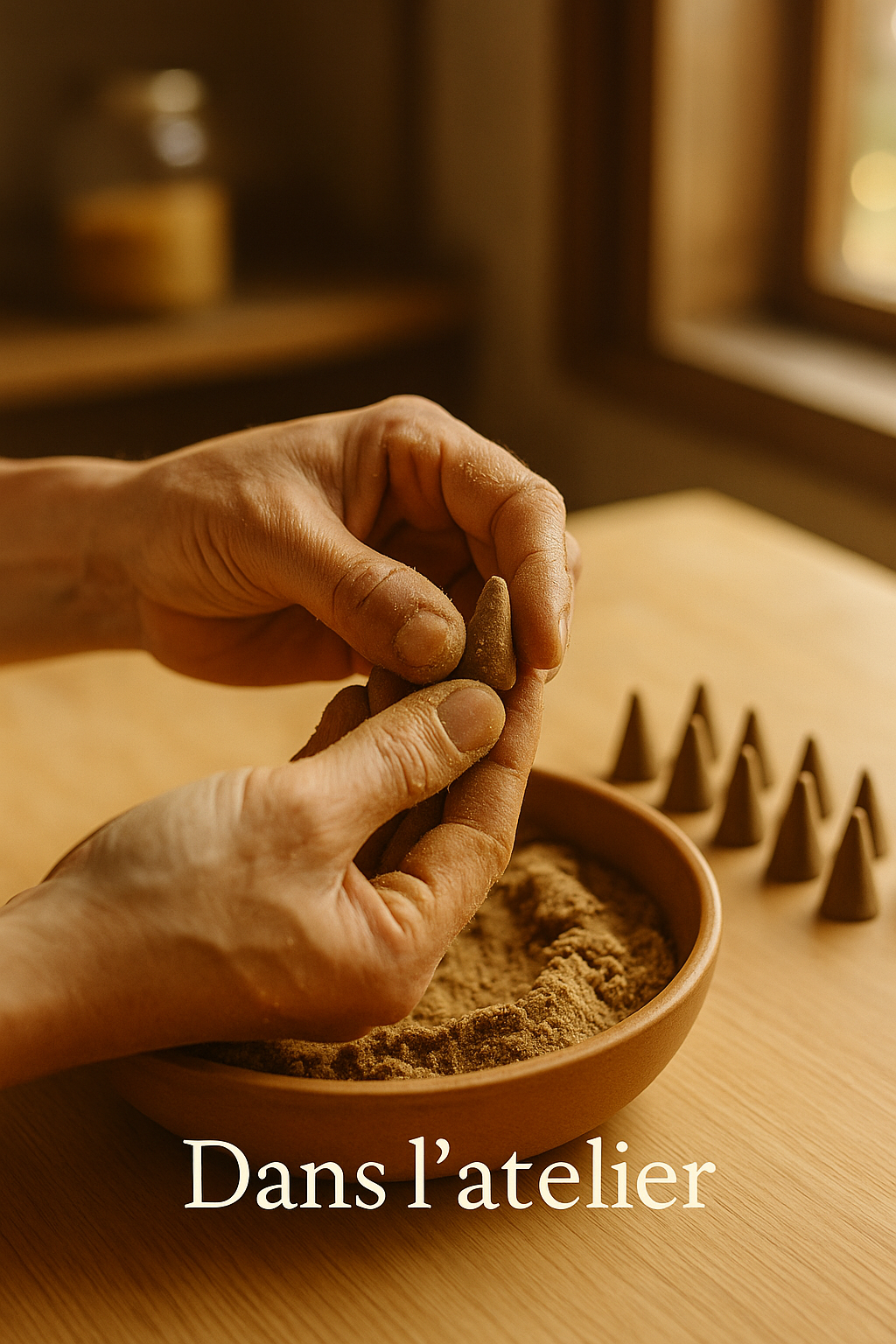 Chaque cône d’encens est façonné à la main, dans la Présence.